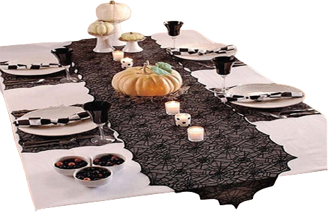 Mantel de tela de araña en color negro, para decoración de Halloween en tu mesa.